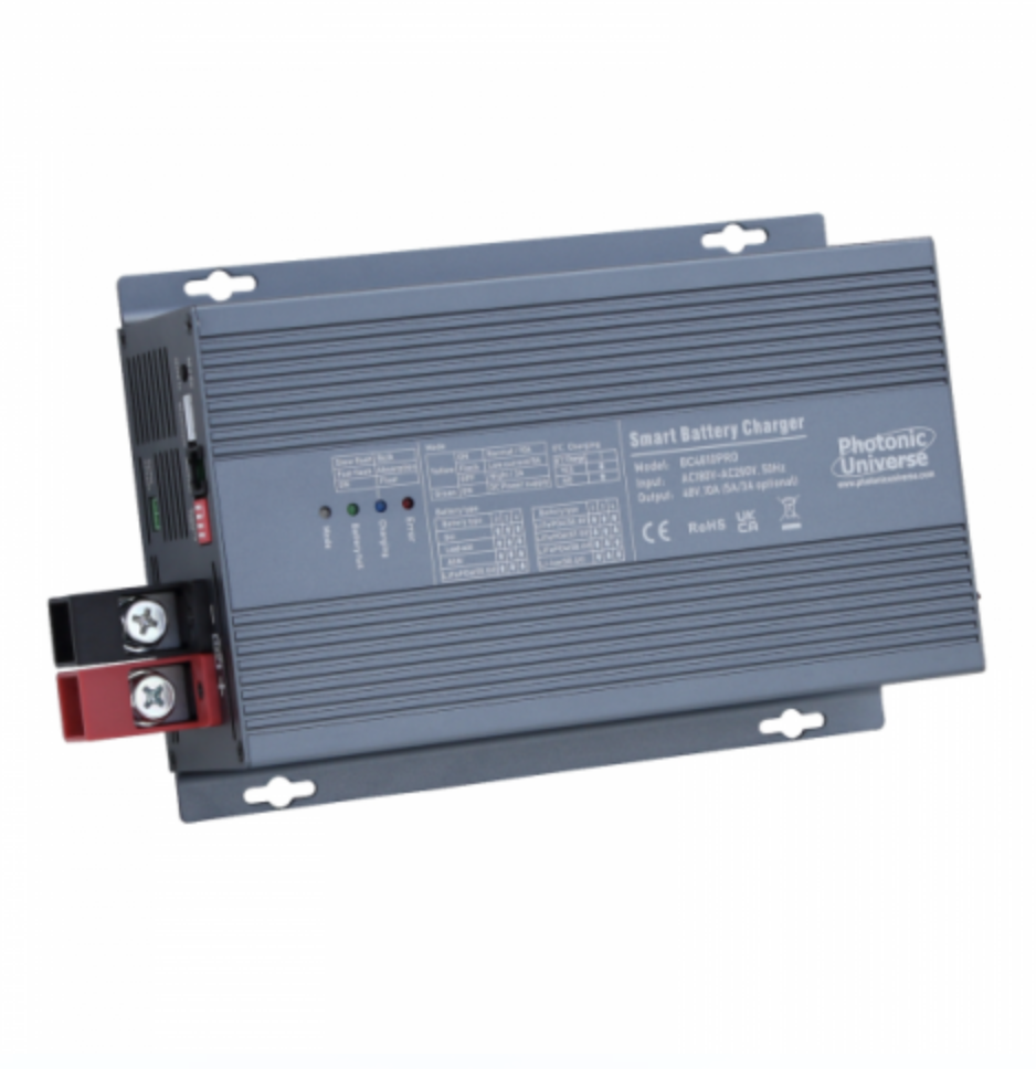This 10A 48V smart automatic multi-stage mains battery charger is designed to enable safe and efficient unattended charging of a 48V battery or battery bank from a mains power source (220-240V AC). With its automatic 4-stage charging algorithm, this charger ensures swift and efficient charging.