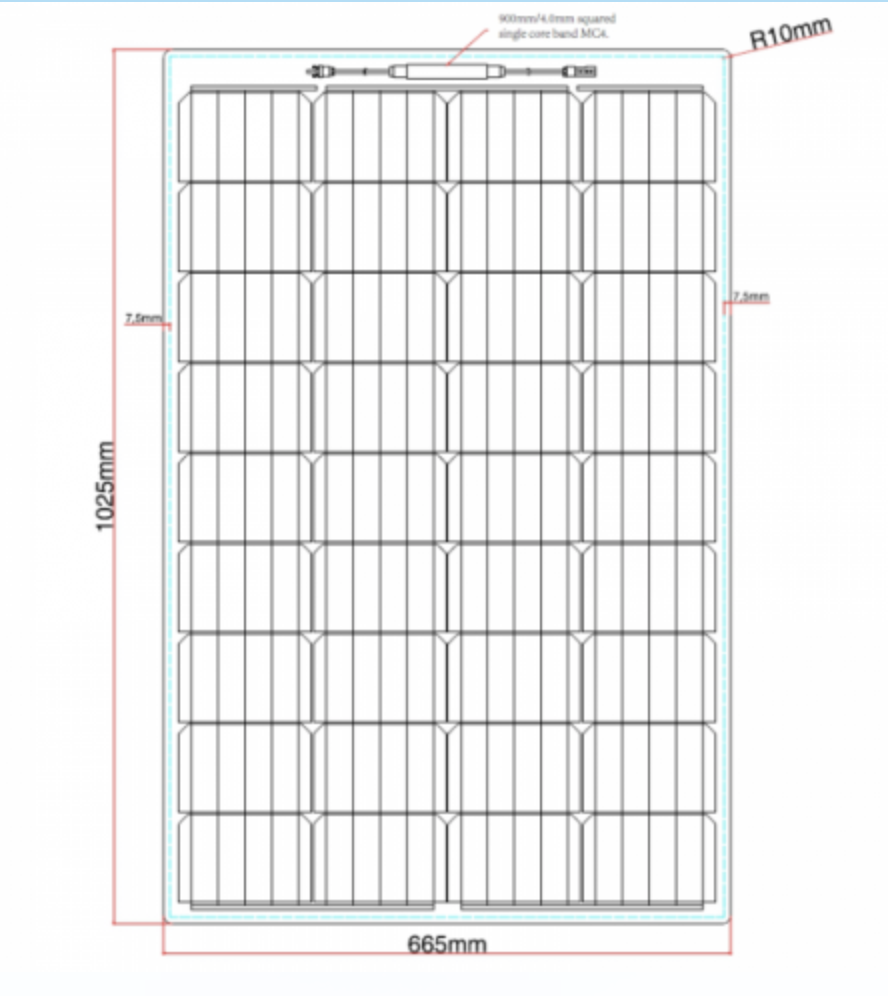 The panel is fitted with 2 x 1m of cable specially designed for solar panels to carry high currents with negligible power loss (4mm² cross section). The cable comes with waterproof MC4 connectors which can be used for easy connectivity to your existing system, for linking several panels together or for connecting 4mm extension cable.
