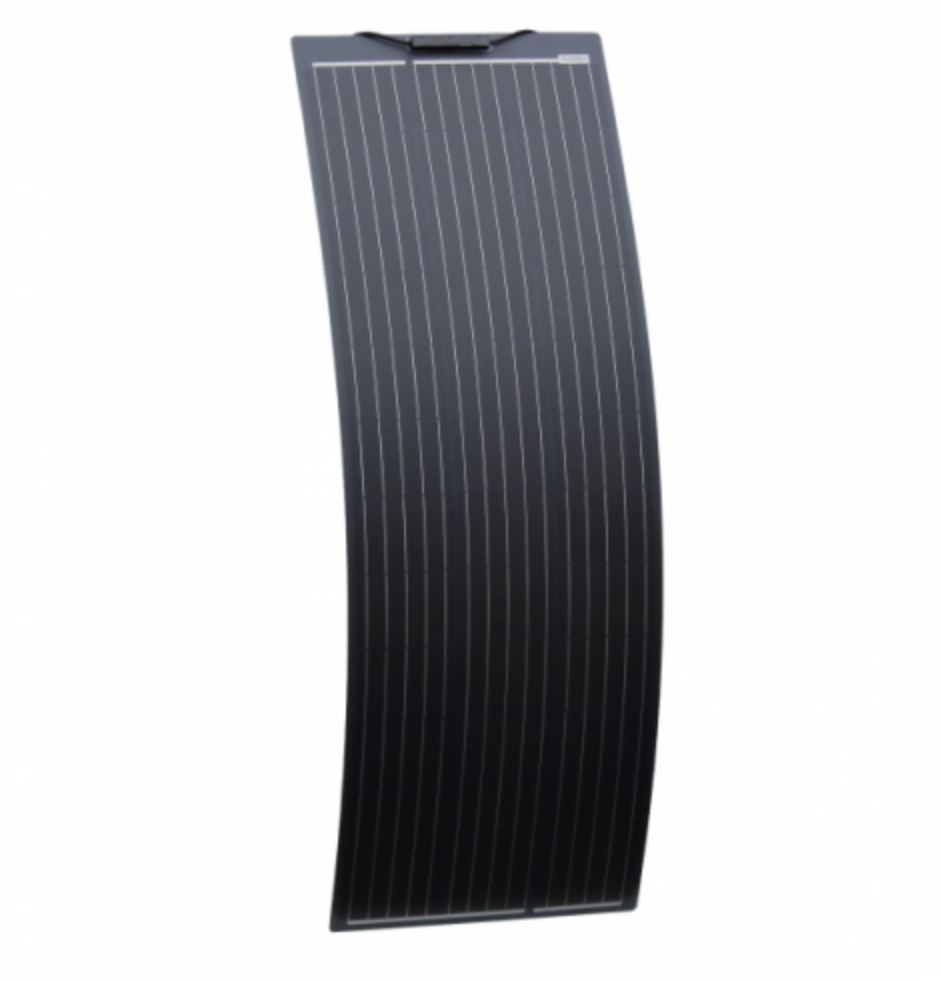 2 x 130W black narrow semi-flexible fibreglass solar panels with durable ETFE coating: