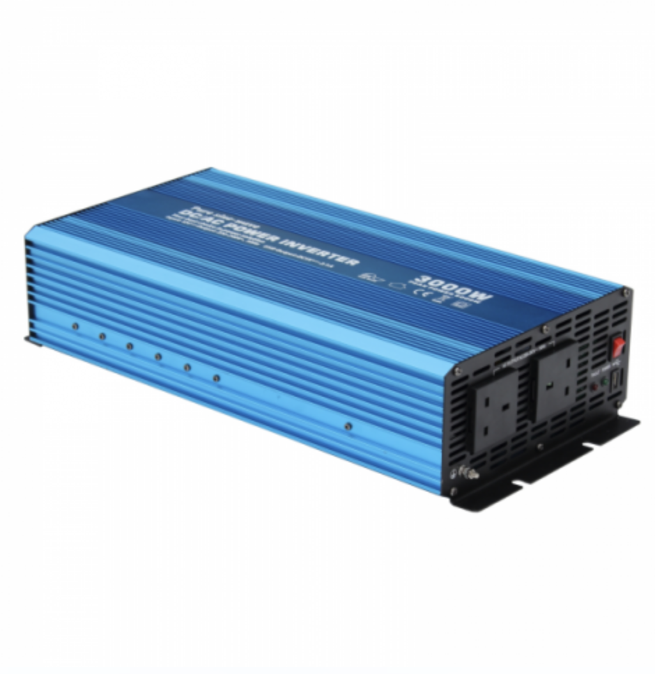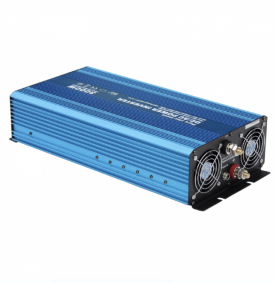 This is a 3000W 12V pure sine wave power inverter which can generate 3000W of continuous power and up to 6000W of power at peak times (peak time reserve capacity is useful if more energy is required to start an appliance than for its continuous running).