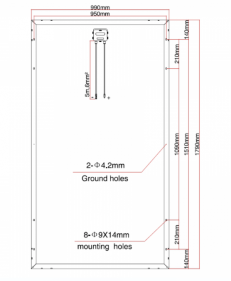 The panel is fitted with 5m of special solar cable which can work at high roof temperatures, with minimum power losses. A pair of male / female MC4 connectors are crimped on the end of cable for easy connection to other solar panels, your existing system or 6mm extension cable. The MC4 connectors can also be cut off when wiring to the screw terminals of a solar charge controller.