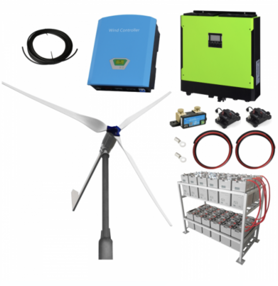 3Kw Grid-Tie Wind Turbine Kit With 5.5Kw Hybrid Inverter And 24Kwh Battery Bank For Export Of Wind Power Into The Grid