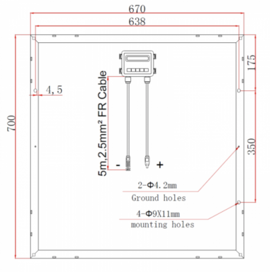 The panel is fitted with 5m of special solar cable which can work at high roof temperatures, with minimum power losses. A pair of male / female MC4 connectors are crimped on the end of cable for easy connection to other solar panels, your existing system or 2.5mm extension cable. The MC4 connectors can also be cut off when wiring to the screw terminals of a solar charge controller.