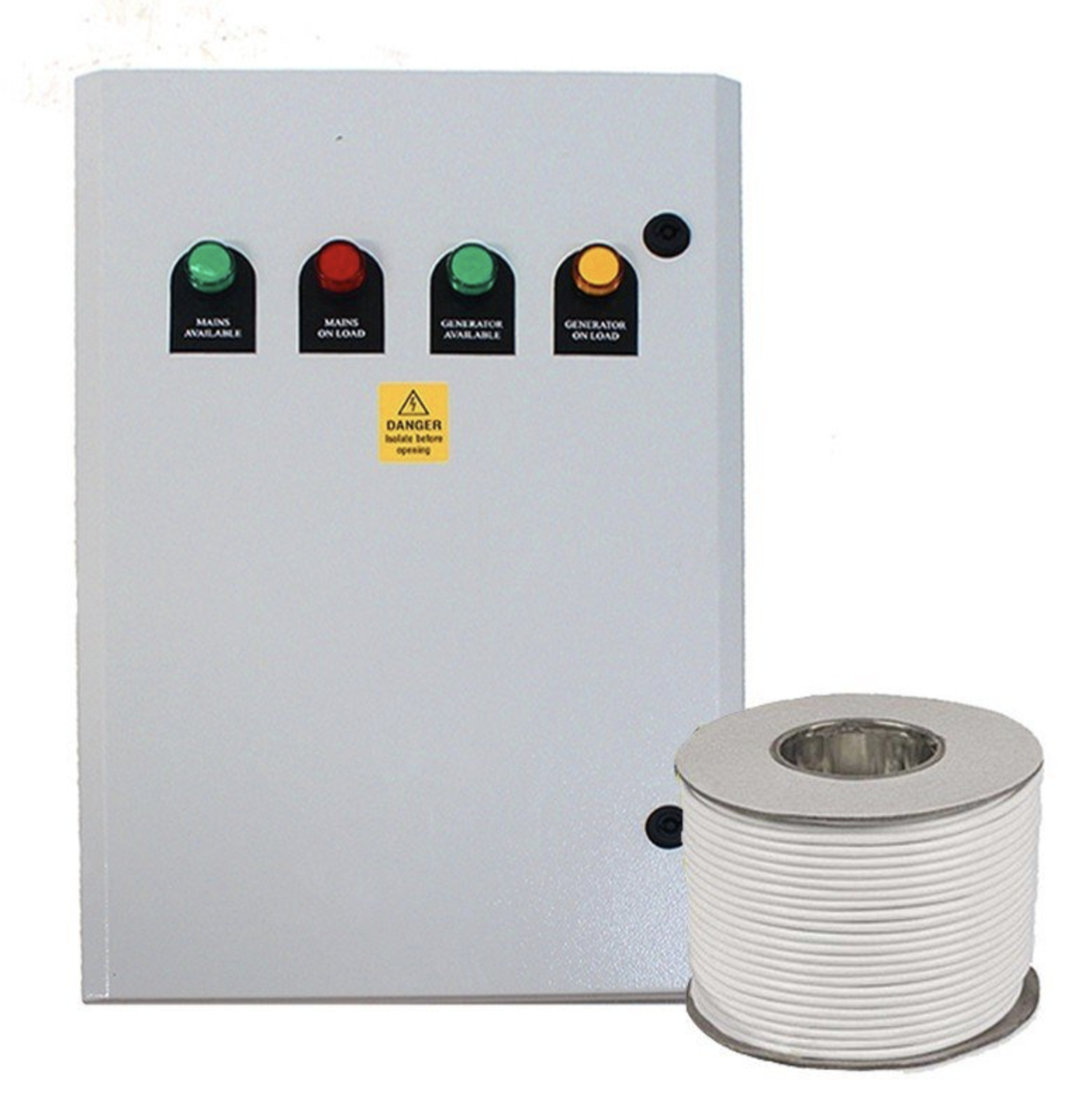 This unit monitors the mains supply and automatically starts your generator and transfers the load. When the mains supply returns it swaps the load back and stops the generator.