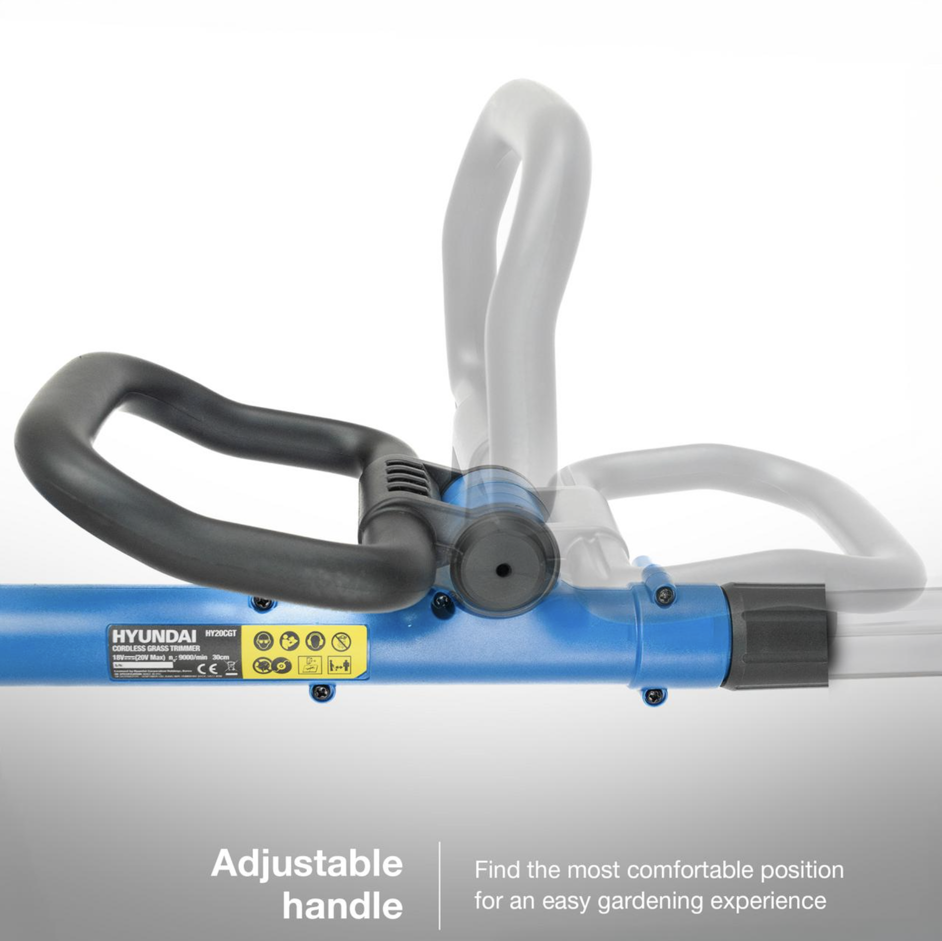 Weighing just 1.8kg, the HY20CGT is designed for comfort and ease of use. The adjustable auxiliary handle provides better balance and control, while the telescopic shaft allows you to customise the height for a comfortable working position.