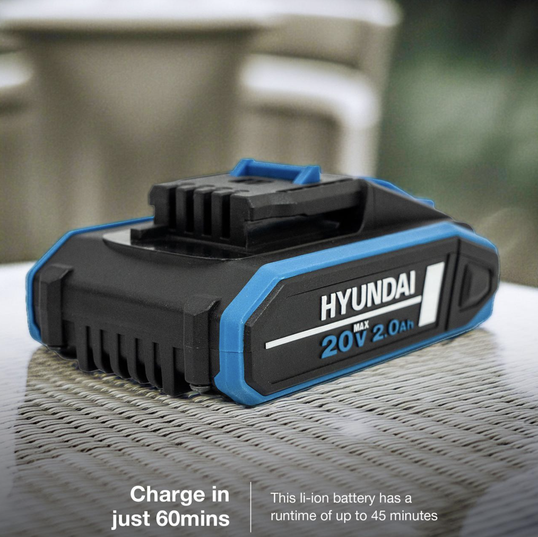 The BI20-2 is a 2Ah lithium-ion spare/replacement battery for Hyundai’s 20V Second Generation range of garden machinery and power tools.