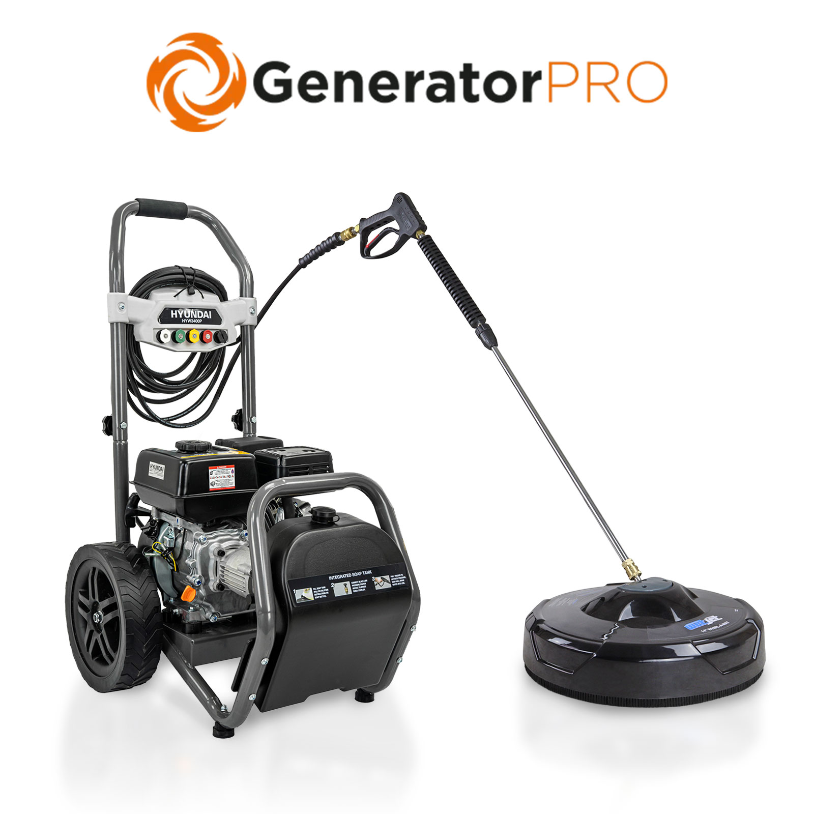 Hyundai 3400psi Petrol High Pressure Washer with WJ14WAW-G Surface Cleaner Bundle