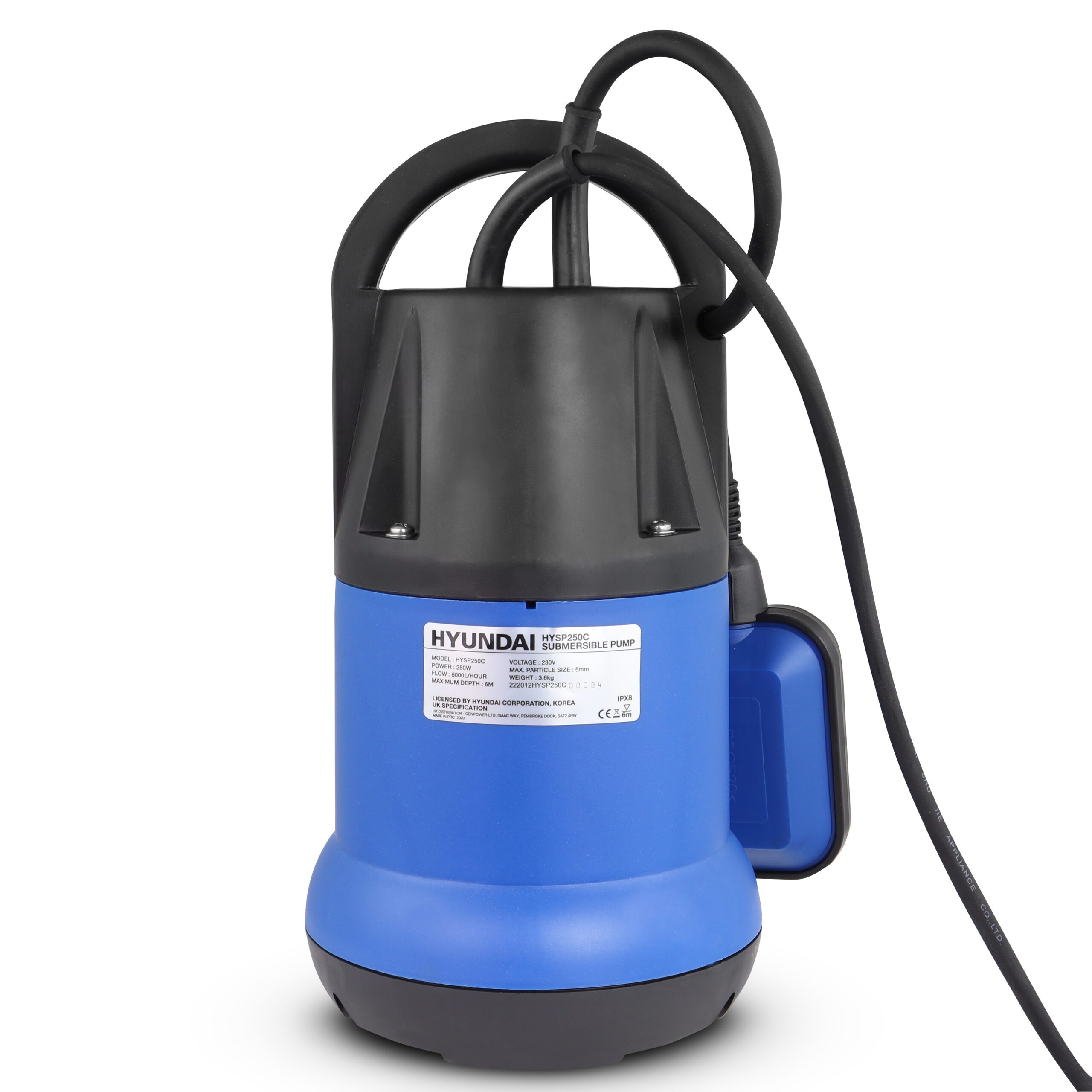 Powered by a 250w Hyundai electric motor, the HYSP250C has an impressive pumping capacity of 6000 litres per hour, which is 100 litres of fluid a minute!
