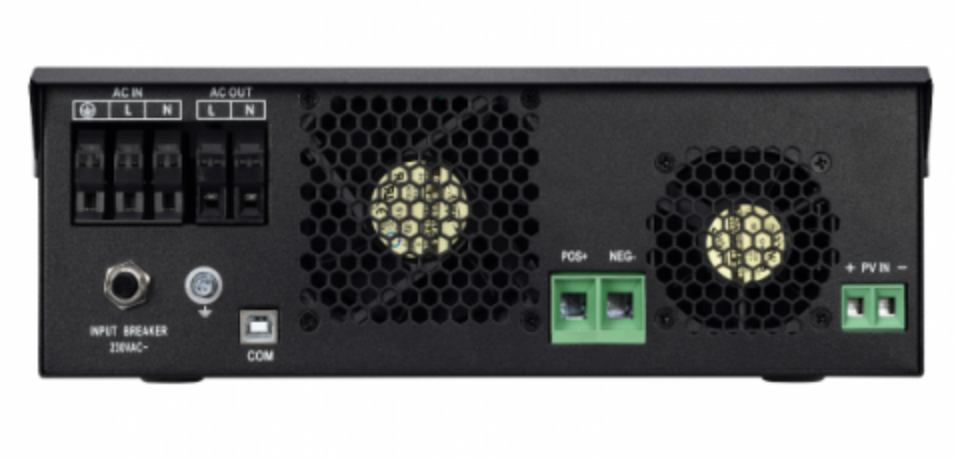 The Iconica 3000W 24V hybrid inverter intelligently combines the functions of a 3000W 24V pure sine wave inverter, 50A solar charge controller and a 25A smart battery charger in one single portable unit. This model can accept input from solar panels, mains power/ generator and a battery – either from a single or combination of input sources. In addition to its unique hybrid capability, this innovative inverter features advanced communication functions, along with a menu full of highly customisable settings.