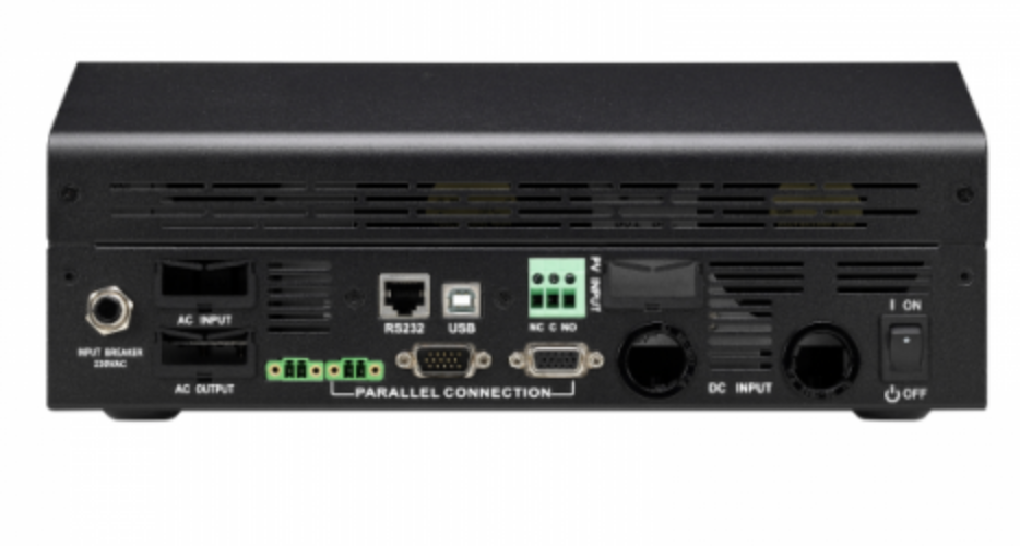4. System expansion potential: This inverter has the ability to be connected in parallel with additional identical units (maximum of 8 further inverters), offering the possibility of large scale system expansion, with up to 45kw of power handling capability. Once connected in parallel, there is the option for 3-phase operation (ideal if the system is being used to power industrial grade equipment and machinery run on 3 phase). Each inverter connected in the system will require a parallel connection kit (sold separately).