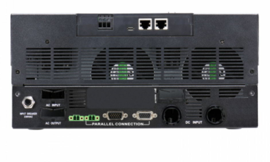 5. System expansion potential: This inverter has the ability to be connected in parallel with additional identical units (maximum of 8 further inverters), offering the possibility of large scale system expansion, with up to 54kW/54kVA of power handling capability. Once connected in parallel, there is the option for 3-phase operation (ideal if the system is being used to power industrial grade equipment and machinery run on 3 phase). Each inverter connected in the system will require a parallel connection kit (sold separately).