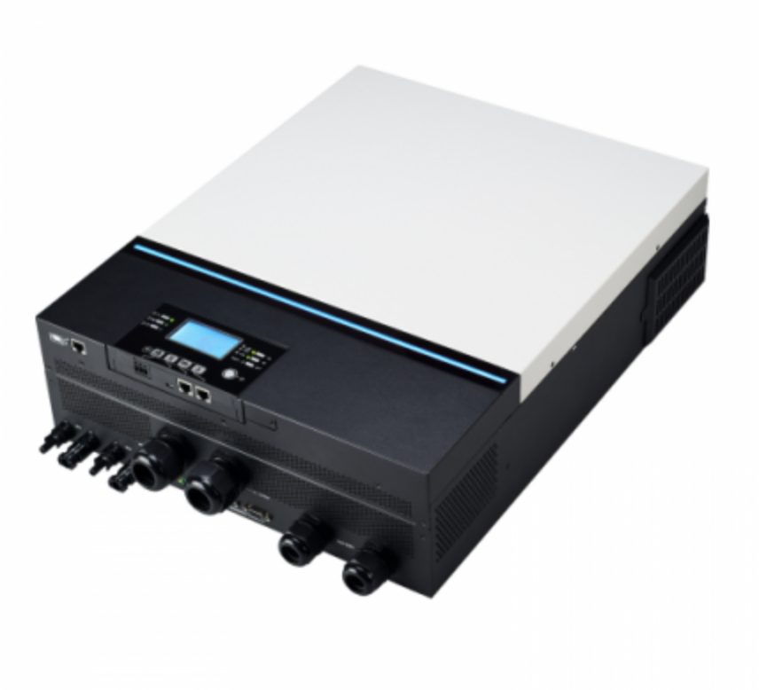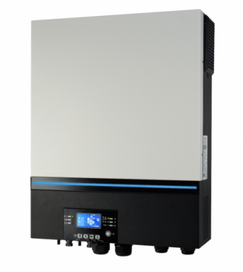 The Iconica MAX 8000W 48V hybrid inverter intelligently combines the functions of an 8000W pure sine wave inverter, 120A MPPT solar charge controller with two independent inputs and an extremely powerful 120A smart battery charger in one single portable unit. This model can accept input from solar panels, mains power/ generator and a battery – either from a single or combination of input sources. In addition to its unique hybrid capability, this innovative inverter features advanced communication functions, along with a menu full of highly customisable settings.