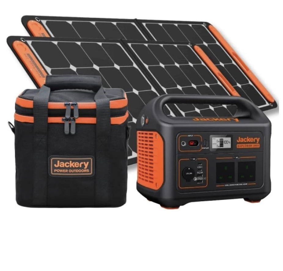 Providing outdoor green power, the Jackery Explorer 1000 portable power station + 2 SolarSaga 100W Solar Panel + Carrying Case Bag is an ideal solution for your next outside adventure. Specially designed for charging all your electrical gadgets the 1002Wh lithium-ion battery will keep your essentials charged.
