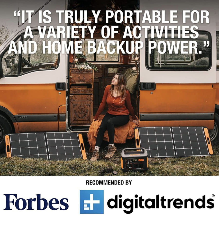 THE JACKERY EXPLORER 1000 PORTABLE POWER STATION + 2 SOLARSAGA 100W SOLAR PANELS + CARRYING CASE.