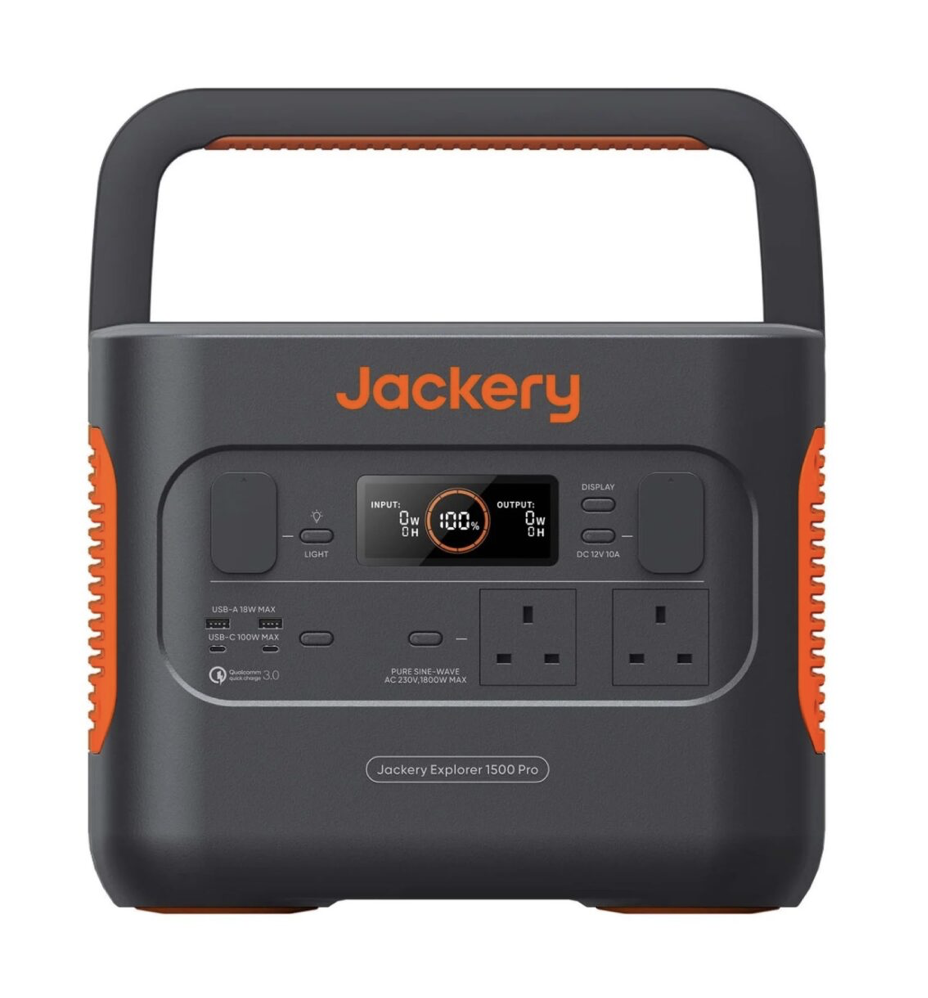 Providing outdoor green power, the ultra-fast charging Jackery Explorer 1500 Pro portable power station is the perfect solution for your next off grid adventure. Specially designed for charging all your electrical gadgets the 1512Wh lithium-ion battery will keep your essentials charged.