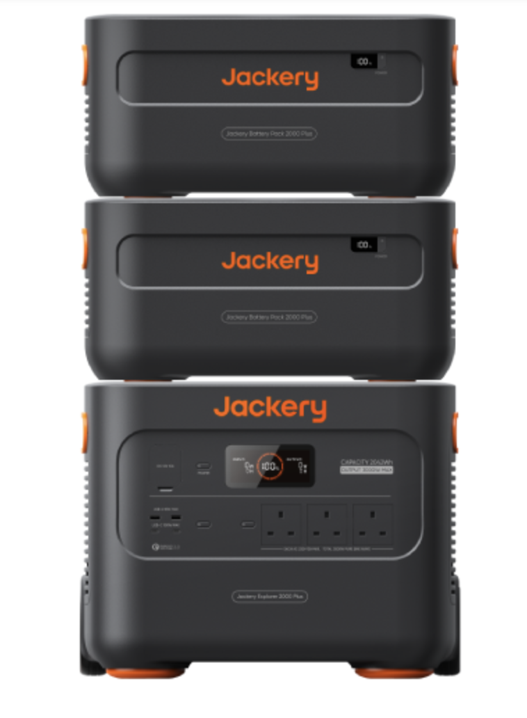 THE JACKERY EXPLORER 2000 PLUS + 2X JACKERY BATTERY PACK 2000 PLUS.