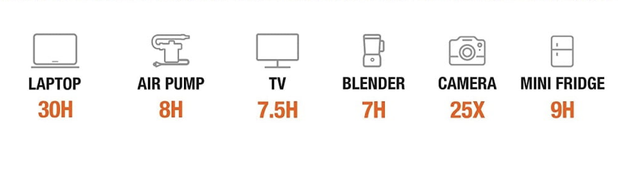 A: Working time = 518Wh* 0.85 / operating power of your device. The duration of our equipment is based on laboratory data, and the duration of specific equipment usage may vary.