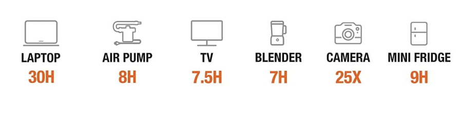 A: Working time = 518Wh* 0.85 / operating power of your device. The duration of our equipment is based on laboratory data, and the duration of specific equipment usage may vary.