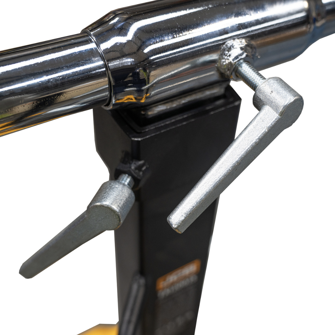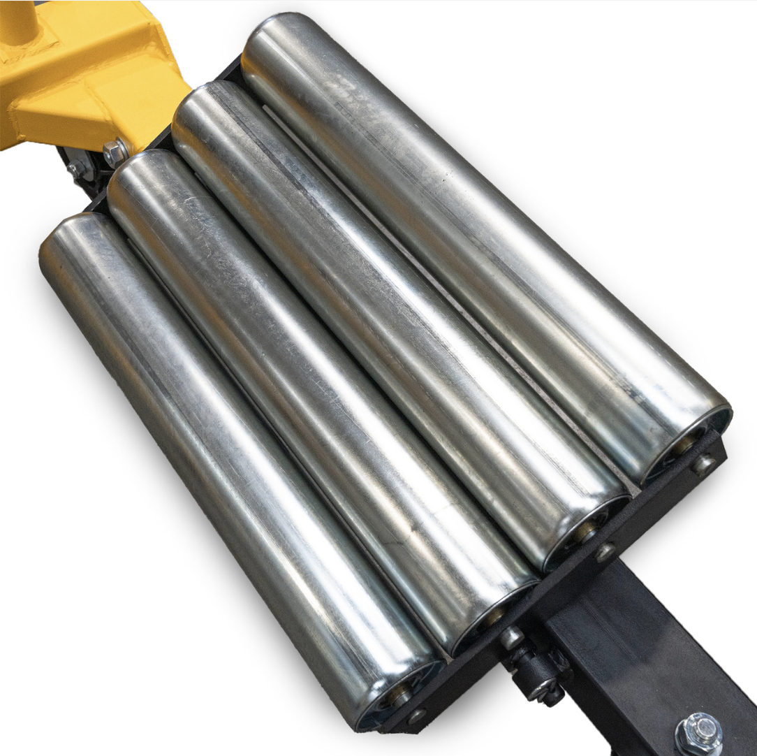 Once the vehicle’s wheel is secured and raised by using the quick-action hydraulic pump lever, the wheel is then supported by two sets of four durable rollers, which provide dependable stability during essential vehicle maintenance.
