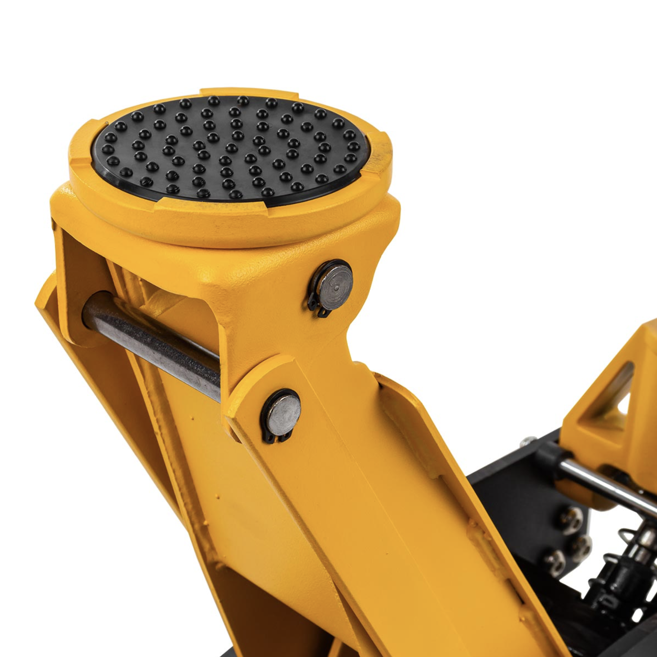 Its durable swivel rear-wheels and swivel saddle creates smooth manoeuvring and positioning of the jack, while an integrated protection rubber pad will prevent vehicles from getting scratched and damaged during lifting.