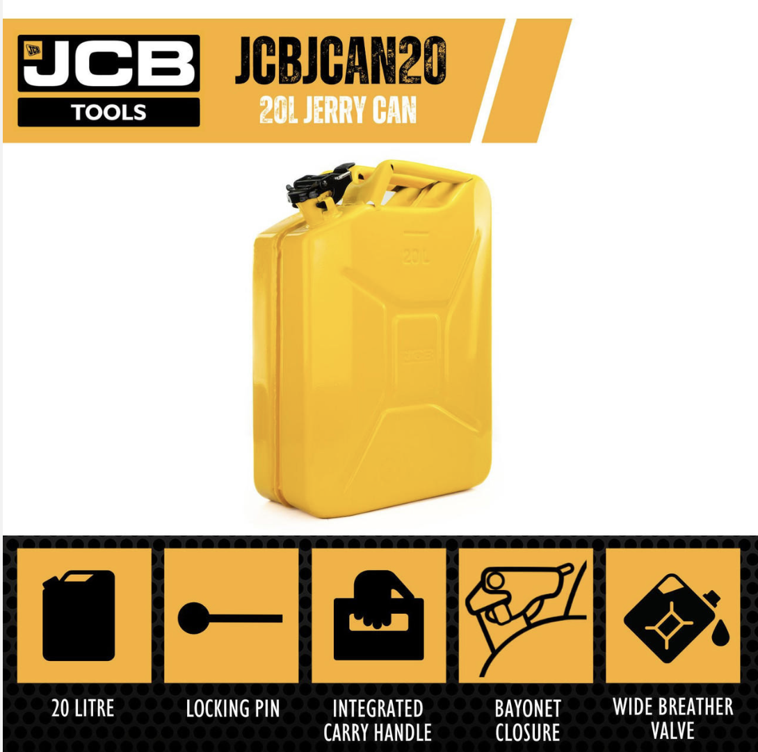 The JCB Tools 20L Jerry Can – JCBJCAN20, is a heavy-duty steel 20-liter Jerry cannister.