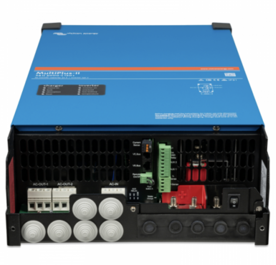 The 24/5000/120-50 MultiPlus-II intelligently combines the functions of a powerful 5000VA 24V pure sine wave inverter, a sophisticated 120A battery charger which features adaptive charge technology, and a high speed 50A AC transfer switchin one single unit. This makes the MultiPlus-II ideal for applications with limited space, and allows you to have a more compact and easy-to-troubleshoot system, especially since using the MultiPlus-II will require less cables compared to using separate units (i.e., separate inverter, battery charger, and AC transfer switch).
