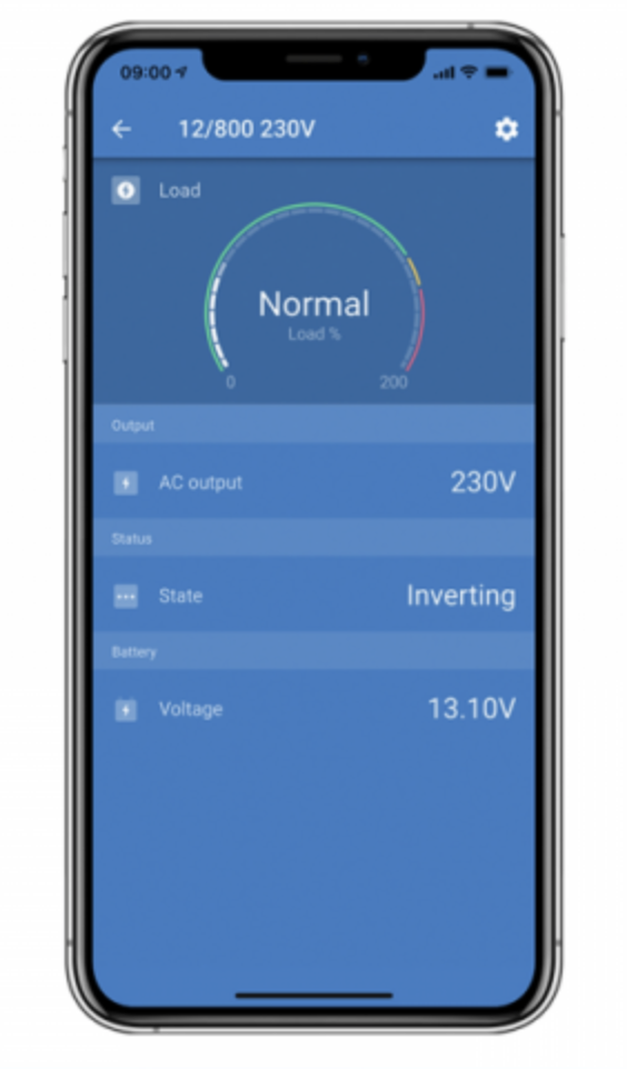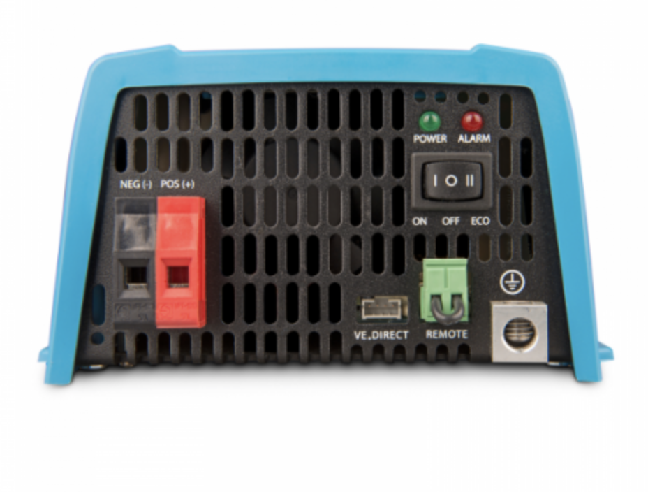 – Advanced monitoring and programming abilities: The VE.direct port of the inverter enables connection to a PC/Laptop to access the free VictronConnect software (requires VE.Direct to USB cable sold separately). Alternatively, an additional VE.Direct Bluetooth dongle (sold separately) may be connected in order to wirelessly connect a smartphone/tablet to the inverter via the VictronConnect app. Using either of these connection methods will unlock the ability to monitor the system from a remote location and view important system data such as Voltage (battery and AC output), a load indicator and alarms. The user will also gain exclusive access to a range of options for remote programming of the system – for example, specifying the low-battery cut-off level (and level for reconnection), the output voltage and frequency (50/60Hz), settings for the power-saving ECO mode. There is also the option to program the inverter so that the ignition control of your vehicle is used for switching the unit On/Off.