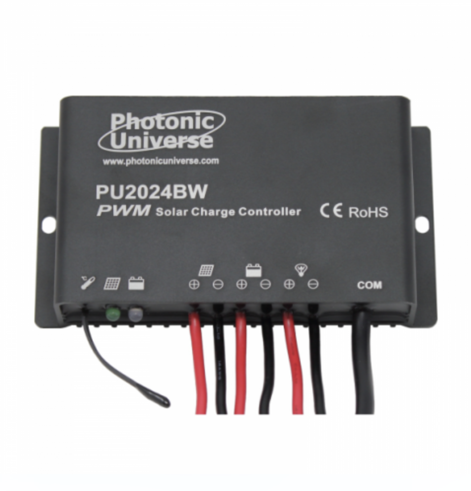 This high quality waterproof 20A 12V/24V solar charge controller is designed to protect batteries whilst charging them, having automatic cut off to prevent over-charging and deep discharge. The controller uses PWM (Pulse Width Modulation) technology which increases charge acceptance and prolongs the life of your battery. Often PWM technology can recover some lost battery capacity.